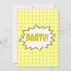 A pop art inspired part invitation featuring a yellow background with yellow halftone pattern. Personalise with details of your event inside the 4 white comic inspired action designs. Opposite side reads "PARTY!" inside white design. Look for matching items such as postage in the "Pop Art" category of Jill's Paperie.