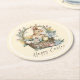 Yellow Happy Easter Bunny Round Paper Coaster