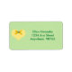 2”l x 3.75”w light green address label with an image of a yellow heart with an optional yellow bow and emerald heart detail. See matching favour tag, heart-shaped sticker and custom-cut vinyl sticker. See the entire Valentine’s Day Label collection in the INVITES | Stickers & Labels section.