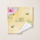 Yellow, white background with a honeycomb pattern. Decorated with pink coloured tropical florals flowers, hibiscus and happy bumble bees. Add your own monogram initials as a married couple. Your family name's initial in the middle with a capital letter.