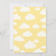 Hot air balloon in yellow, white, and silver glitter-look accent with yellow and white cloud background gender neutral baby shower invitation card design.