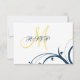 Yellow Initial, Blue Swirls Wedding RSVP Card