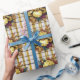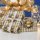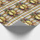 Yellow Iris With Autumn Leaves on Plaid Background Wrapping Paper