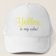 You'll love this stylish hat with the cute design stating that yellow is your favorite color. Quote text is "Yellow is my color!" in a fun and cute typography mix of yellow and black.