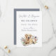 Save the date cards with yellow lab design. Dark, colonial blue text on white paper. At the bottom, a Labrador retriever lies among wildflowers. Reverse is solid blue to match the text. Make changes easily using the design tool, or contact me for help.