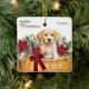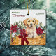 Yellow Lab Puppy Poinsettia Christmas Basket Ceramic Ornament