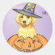 Time for Halloween fun! Go Trick or Treating with this cute Yellow Lab puppy witch in a smiling Jack-o-Lantern. Great gift for kids of all ages who love Labrador Retrievers and Halloween. Happy Howl-oween!