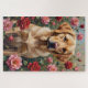 Yellow Labrador Dog Valentine's Day Rose Field Jigsaw Puzzle