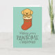 Cute yellow labrador puppy in Christmas stocking .. fun holiday themed Christmas dog cards from Ricaso - featuring an adorable lab dog snuggled up in holiday stocking with the text 'wishing you a pawsome Christmas'