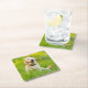 Yellow Labrador Plays Fetch With Stick Square Paper Coaster