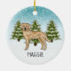 Yellow Labrador Retriever Blue Winter Custom Name Ceramic Ornament