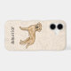 Destei's original cartoon illustration of a yellow colour Labrador Retriever breed dog. The background colour is light beige with a decorative texture. The background colour can be changed to any other colour and the texture can be removed, if so wished. There is also a personalizable text area for a name or other custom text.