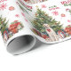 The repeated pattern on this Christmas wrapping paper includes an image of a beautiful yellow Labrador Retriever dog wearing a festive red bow. The dog sits in front of a decorated Holiday tree. Stylised red and green text says MERRY CHRISTMAS", and your own signature is in two fields for you to customise. Other images included in the pattern include red decorative snowflakes, candy canes, and a peppermint lolly pop.