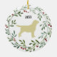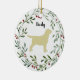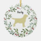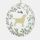 Yellow Labrador Holiday Ornament in a pretty wreath design . Personalise with name and year .COPYRIGHT © 2020 Judy Burrows, Black Dog Art - All Rights Reserved