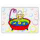 Whimsy and funny Labrador Retriever Dog Cartoon created by Naomi Ochiai from Japan. Great fun gifts for dog lovers who love Yellow Labradors. An adorable Yellow Labrador puppy is playing with rubber ducks in the bathroom wearing a shower turban on his/her head! Great combination of Labrador dog and ducks and water!! Cute and sweet Labrador Cartoon and nice for pet business like pet salon as well. You can add text.