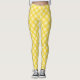 Yellow leggings with a white plaid pattern are shown in front and back views. They are paired with black and white sneakers on a plain background.