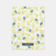 This cute fleece blanket features a white background with patterns of light yellow lemons and blue grey leaves. Personalise it for your needs. You can find matching products at my store.