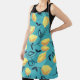 Yellow lemon gouache pattern on turquoise. apron
