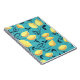 Happy yellow lemons and leaves pattern. Tropical vibes. Turquoise background.