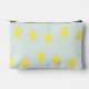 Yellow lemon slices on blue accessory pouch