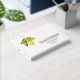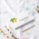 Features vibrant yellow lemons, lush greenery, and delicate floral accents, creating a cheerful and refreshing look.