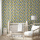 Yellow Lemons and Blue Leaves Kitchen Wallpaper