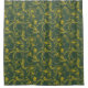 Yellow Lemons Hand Drawn Pattern on Green Shower Curtain