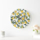 Yellow Lemons, Tropical Seamless Print. Large Clock