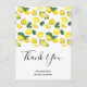 Thank you postcard with a cute pattern of yellow lemons with green leaves and fresh cut lemon slices.