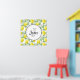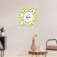 A poster personalised with a monogram initial and name inside a white circle with a black rope border. Designed with yellow lemons and green leaves, in a repeating pattern.