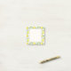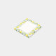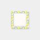 Square sticky notes designed with yellow lemons and green leaves, in a repeating pattern. A cream coloured square with a thin black border layered over top for easy legible writing.