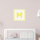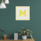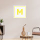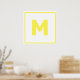 Yellow letter M alphabet on white background with yellow border. Help your little one learn the alphabet with this letter M design.