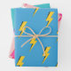 Yellow Lightning Blue Background Y2K Pattern Wrapping Paper Sheet