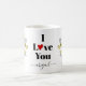 Illuminating yellow Love birds and ultimate grey sakura cherry tree with blossoms Coffee Mug. A personalised mug with the phrase "I Love You" and name perfect gift for Valentines day.