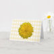 A photo of a pretty yellow marigold flower on a yellow diamond patterned background. This card has been left blank so you can add your own special greeting. To do this simply click on the “customise it” button. Here you will be able to add your text using a range of fonts and colours. You can also change the background colour of the card.