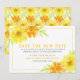 Simple botanical marigold art in yellow, orange, green, and white square wedding save the new date card. Edit this new rescheduled save the date card with your own names and wedding date. Other matching items are available. Original watercolor marigold floral hand painting and design by Sarah Trett for www.mylittleedenweddings.com