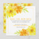 Simple botanical marigold art in yellow, orange, green, and white square wedding save the new date card. Edit this new rescheduled save the date card with your own names and wedding date. Other matching items are available. Original watercolor marigold floral hand painting and design by Sarah Trett for www.mylittleedenweddings.com