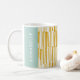 Yellow and turquoise blue modern abstract pattern personalised gift mug design.
