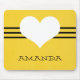 Sweet and charming Modern Heart Mousepad featuring a yellow background and a cute heart and striped border. This cute and girly mousepad will add style to any workspace. Customise with the text of your choosing. Click on "Customise" to find additional personalisation options.