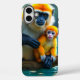 This phone case has two cute yellow monkeys on it.
