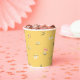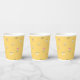 Silly monster faces surround this paper party cup. Golden yellow background and black and white monster faces. Coordinates with "Our Little Monster" Birthday Collection.