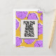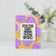 Framing the central message are large, graphic purple flowers. These illustrations have a pop art quality, with their exaggerated outlines and flat colour fill, contributing to the card's overall playful and upbeat vibe.