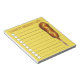 Notepad design features an original marker illustration of a delicious deep fried corn dog with yellow mustard. Just personalise with your information.