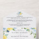 All-in-one card includes wedding invitation, details, an engagement photo, and a self addressed RSVP card that your guests rip off and mail back to you. Personalise the cover with your names and wedding date framed by lush citrus floral greenery. This "roomy" invitation is a great way to give your guests additional information on the wedding. These cards can list the festivities surrounding your wedding weekend, such as welcome cocktails, after-parties, and morning after brunches. If you’re planning a destination wedding, all-in-one invitations are a great way to provide information to your guests about local hot spots and area attractions to help them make the most of their travel plans.