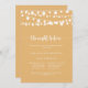 This yellow night before rehearsal dinner invitation is perfect for a rustic event. The design features beautiful hand-painted string lights in a yellow background.