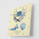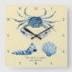 Yellow Ocean Crab Seashells Nautical Beach House Square Wall Clock