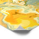 This piece showcases an abstract fluid design dominated by warm yellow and orange tones, blending seamlessly with softer beige and green hues. The flowing, wave-like patterns create an organic, soothing visual reminiscent of sunlight or autumn leaves in motion. The harmonious colour palette evokes warmth, energy, and elegance.
