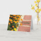 Let your friend know that you were thinking of them with a pretty marigold greeting card. I took this photograph of the yellow and orange marigolds that border my garden. There are red patio pavers and stone pebbles to the right, offering some contrast and accent. Greetings is written in green letters across the middle paver, and it can be customised. Thank you for shopping at CherylsArtPhotos on Zazzle.
