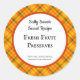 A retro ginham plaid pattern of yellow and orange with smaller brown and green stripes on custom canning stickers with script and vintage block letters for your name or small business, recipe title and room for ingredients, weight, address, or more information.