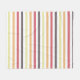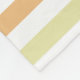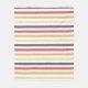 This fleece blanket features colourful stripes in fall colours: yellow, orange, red and dark grey.